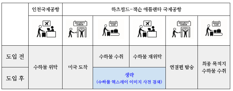 [표] 인천 출발-애틀란타에서 환승시 IRBS 도입 전후 비교